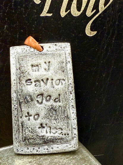 Necklace: 3" with 1" dangle 9 large Crystal beads and 12 small Crystal beads hand wire-wrapped with copper wire with medium lobster clasp.