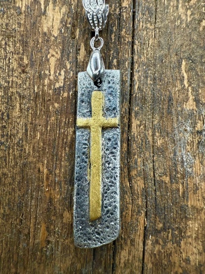 Necklace: 9 1/2" 13 small creamy white Pearls and 3 small pink Swarovski Crystals hand wire-wrapped with gold colored wire and a small gold colored lobster claw.