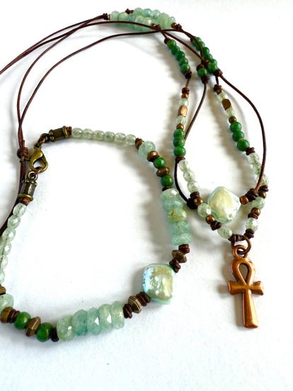 2 1/2" Irish Celtic "Believe" hand-carved ceramic bar pendent on 18" leather with an antique copper heishi bead.